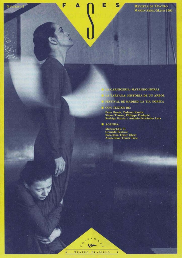 Número 2. Marzo/Abril/Mayo 1991. Editorial: Proyectos y realidades. Matando Horas, La Carnicería Teatro. Historia de un árbol, La Tartana Teatro. ‘Los títeres de la Tía Norica’. Zig Zag ‘El poder del artesano’, Peter Brook. Memoria ‘Contra la simulación’, declaraciones de Tadeusz Cantor. Foco ‘Sigamos cantando’, Simon Thorne. Margen ‘Massalia: el azar necesario’, Phillippe Foulquie.