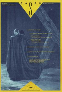 Número 0. Noviembre 1990. Editorial: Bienvenidos. ‘La Balada del Dinosaurio. Los Malentendidos del Teatro Contemporáneo’, Antonio Fernández Lera. ‘Fenómenos Atmosféricos. Proyecto Escénico’, Esteve Graset. ‘Sobre los Criterios del Teatre Obert’, Toni Cots. ‘Notas sobre la Exhibición Alternativa’, Alberto Martín Expósito. ‘Otro Loro’, Rodrigo García. ‘La Estética es la ética del Presente’, Guillermo Heras. ‘Por una Nueva Sensibilidad para la Escena Española’, Manuel Llanes Barrios. ‘Seznec y los Hombres de Piedra’, Antonio Fernández Lera, Carlos Marquerie. Extrarradios / Arena/ Graset, A:F:L.