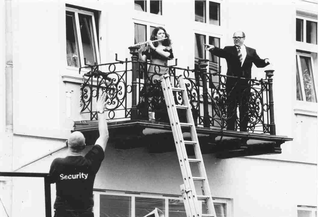 Bristol, UK. 2005. En el marco del festival TheatreBristol , Leo Bassi invitó a este magnífico activista vicepresidente del CND en Inglaterra que en la conferencia del partido Laborista en Septiembre 2005 espetó a Jack Straw durante su comparecencia acerca del error de Irak.