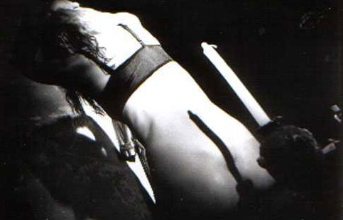 Llevo dentro de la vagina un desodorante y del ano una vela ensartada con luces de bengala.