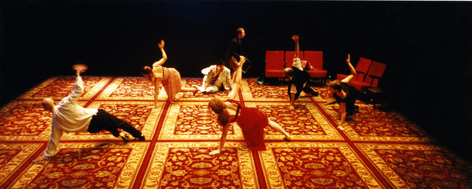Siete butacas rojas de espectador, en hilera, dispuestas en una esquina, acotan el ángulo del fondo derecha de un espacio rectangular cubierto con alfombras, donde se va a desarrollar el «juego» de los intérpretes. Lo fundamental es la atmósfera que se crea entre ellos, de risas y tristezas, de bailes y discusiones, de ironía sobre uno mismo y lo que están haciendo. Muchos de los parlamentos y actuaciones se hacen frente al público, buscando una comunicación directa con este, en un tono de espontaneidad, acentuado por la frecuente simultaneidad de acciones que se superponen. Se suceden reflexiones sobre lo fugaz de la vida, sobre la muerte y lo incierto de la realidad, sobre la condición de personajes y lo que se esconde detrás de estos, la verdad de la actuación, de la vida. Se trata de un canto a la vitalidad y las ganas de vivir, una fiesta escénica expresada desde la diversidad de actitudes y orígenes de que hacen gala los actores, que termina pasando inevitablemente por la conciencia de un final, de las limitaciones (de la propia palabra con la que se trata de explicar todo esto), ahogadas en el silencio mudo de la escena, cuando callan los alegres acordes gallegos, y todo es melancolía. Por eso el título inicial de la obra iba a ser Tir Na Nog, que alude al país de los muertos en las leyendas artúricas, el lugar de donde los que habían pasada a mejor vida podían salir a su antojo para visitar el país de los vivos -de los espectadores, como diría Kantor-, de modo que andaban de un lugar a otro, de unos escenarios a otros.