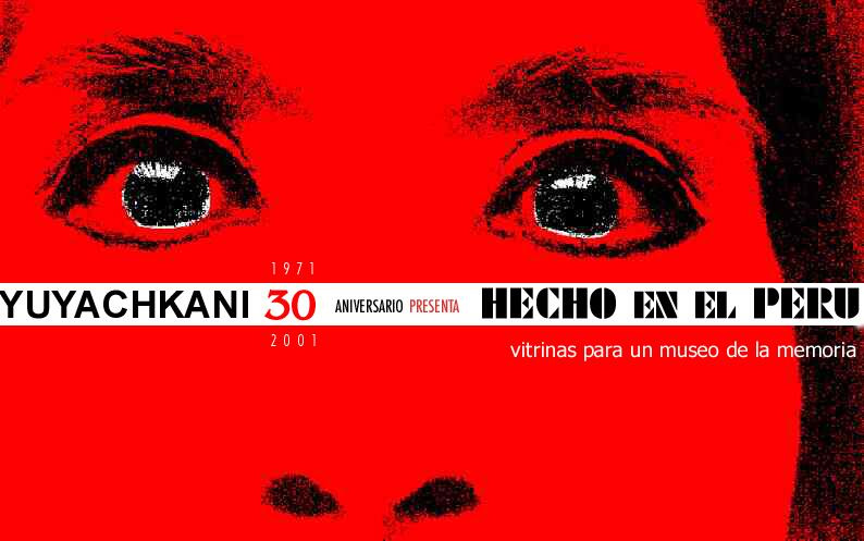 En julio del 2000 Yuyachkani presenta una producción híbrida entre la instalación plástica y la acción escénica. Hecho en el Perú, vitrinas para un museo de la memoria, fue una creación instalada en las galerías de un centro comercial de Lima, en el corazón de la ciudad, en plena crisis del espectáculo fujimorista y en diálogo con la ‘teatralidad’ de su gesticulación política. En esta instalación se condensaban varias experiencias del grupo: las acciones callejeras, las confrontaciones de algunos personajes en los escenarios sociales y el encuentro con artistas del performance art.