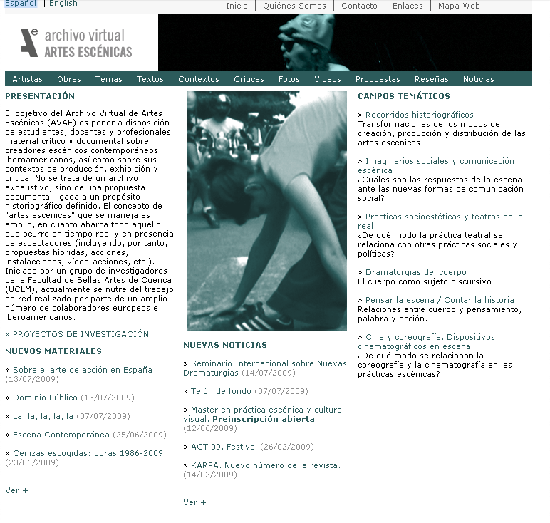 El mejor medio para la documentación de las artes escénicas y de acción es el multimedia. El objeto del proyecto es la recopilación y ordenación de material audiovisual (fotografía, sonido, vídeo, filmación) documental de acciones artísticas, espectáculos de danza y teatro producidos en España entre 1980 y 2000, con el que se construirá una base de datos. Incluirá también la relación de algunos registros propios (entrevistas con los creadores, grabación de espectáculos y acciones).