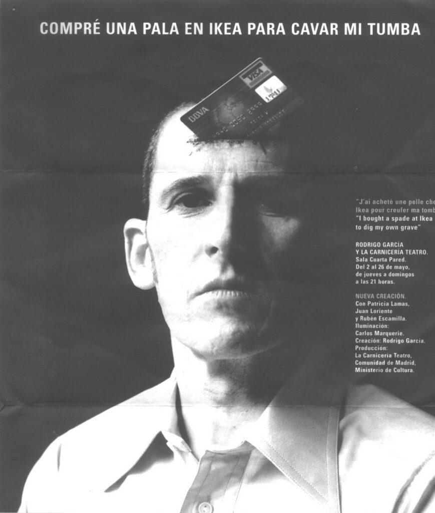 El arranque del espectáculo es el más brillante de todos los ideados hasta ahora por Rodrigo. Juan Loriente entraba en escena con una tarjeta de crédito clavada en la frente, adoptaba una pose descompuesta pero estable y muy suavemente formulaba sus posiciones respecto a comportamientos cotidianos que ocultaban una dejadez de la responsabilidad que cada cual tiene con su propia vida. La palabra de Juan fluía serena, no necesitaba énfasis porque su convencimiento de lo que dice era total; su gesto, relajado, a pesar de la inmovilidad del cuerpo, y en su mirada, algo parecido a la tristeza que no impedía al público la carcajada como respuesta a sus propuestas. Al cabo, entraba Patricia Lamas, con una tarjeta en la mejilla. Y más tarde el niño, Rubén, con la tarjeta en la pierna. Los tres se alternaban en la formulación de ideas. La acción-palabra continuaba durante largos minutos, y el público se sentía cómodo, a pesar de algunas brulalidades que los actores formulaban con exquisita suavidad.