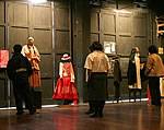 Que sean jóvenes estudiantes quienes conducen y desplacen estos carromatos, como artesanos-tramoyistas que intentan recomponer el fragmentado rompezabezas de la memoria, es otra de las metáforas que aquí despliega Yuyachkani. despliega Yuyachkani. El propio espacio donde se desarrolla esta serie de acciones es una especie de environments, de ambiente, de gran collage, donde se mezclan vitrinas con libros sobre Historia del Perú, fragmentos del discurso de Salomón Lerner, fotos y fotocopias con imágenes de sucesos históricos y recientes, cuadernos de notas de las actrices, pedazos de cartas, vestuarios, muñecos, máscaras y diversos objetos que serán utilizados por los actores o configurarán pequeños nichos-instalaciones desde los cuales se va articulando una memoria colectiva. Una especie de galería donde se suceden tiempos y presencias, sin vocación museística, sino haciendo de la memoria un registro vivo que pasa por el cuerpo y el posicionamiento crítico de cada actor, en un diálogo que recupera texturas, materiales y objetos de algunas de sus anteriores creaciones. despliega Yuyachkani. Los paródicos personajes de la acción callejera El bus de la fuga, aparecen aquí en una reelaboración acotada por la nueva espacialidad . Las diversas situaciones de la mujer que se van construyendo a lo largo de la serie de acciones, retoma y desarrolla algunas de las imágenes ya planteadas en Hecho en el Perú.