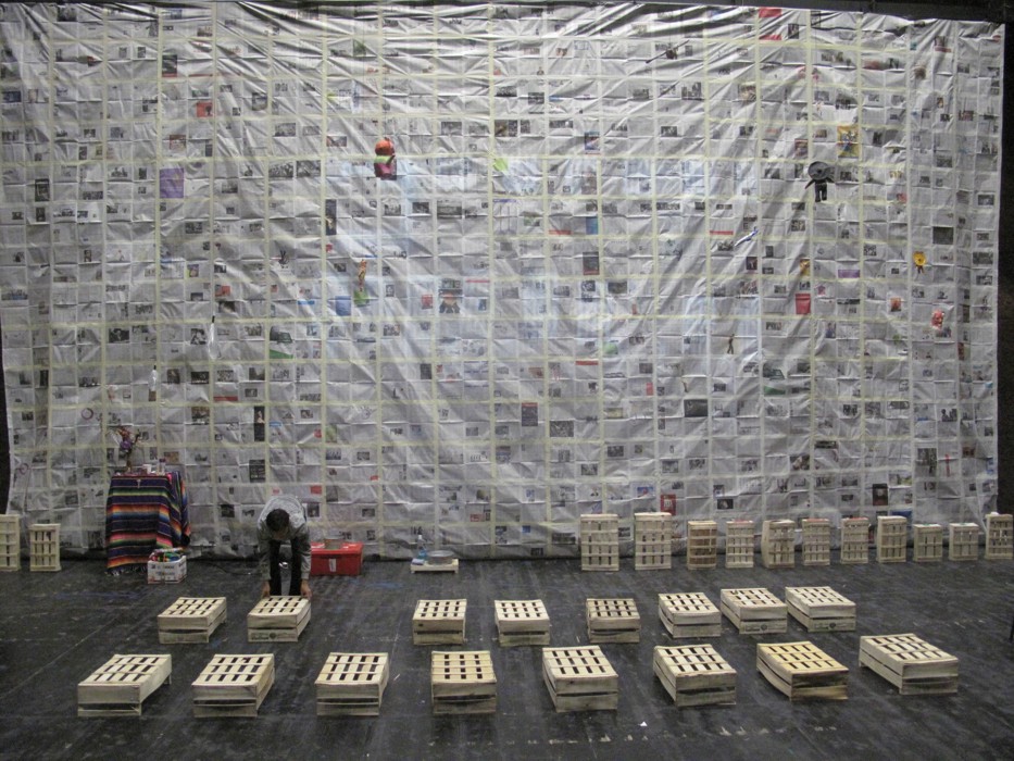 Los elementos escénicos utilizados en general fueron apareciendo de diversos recorridos que hicimos por mercados, tianguis, basureros y espacios públicos citadinos.