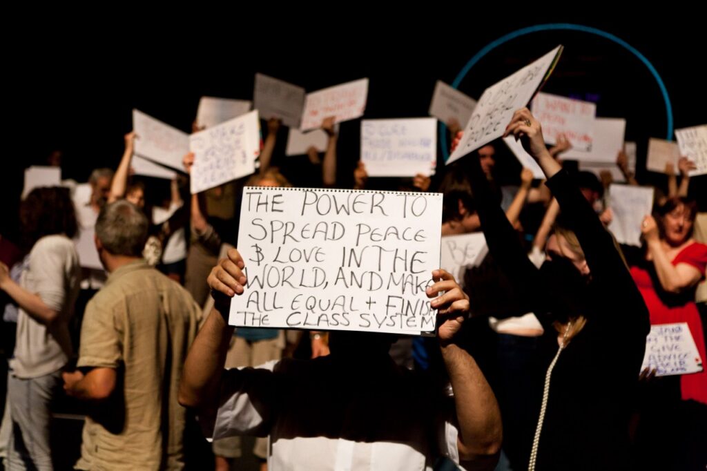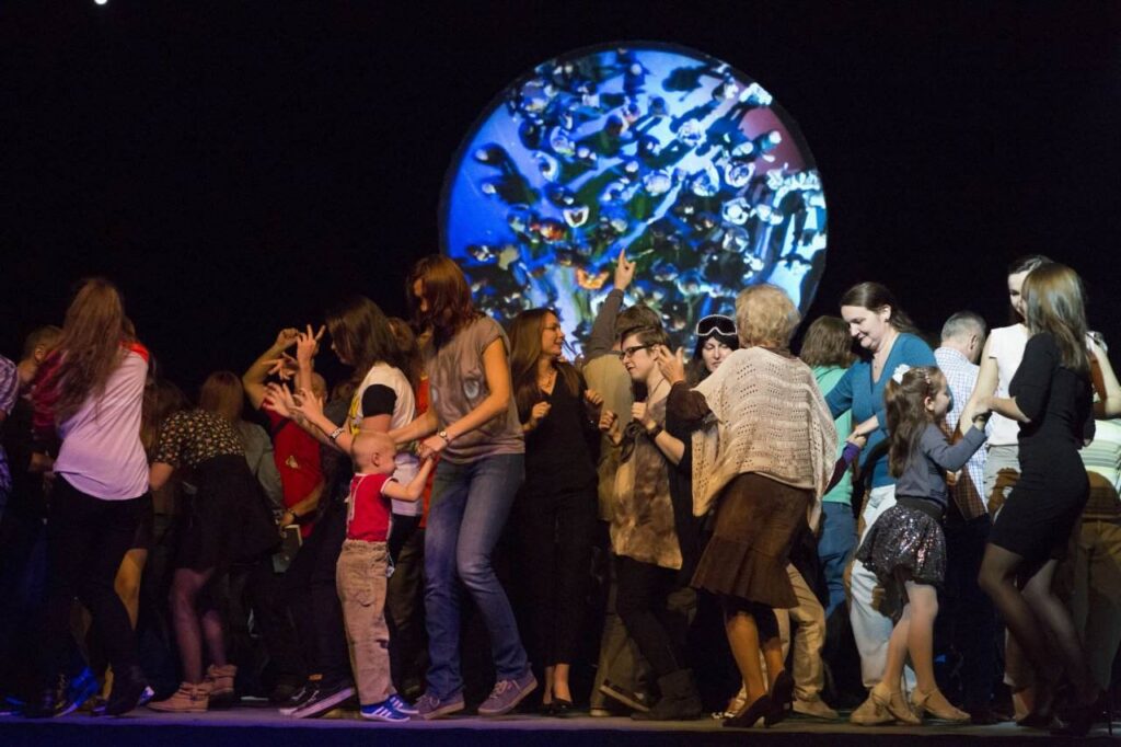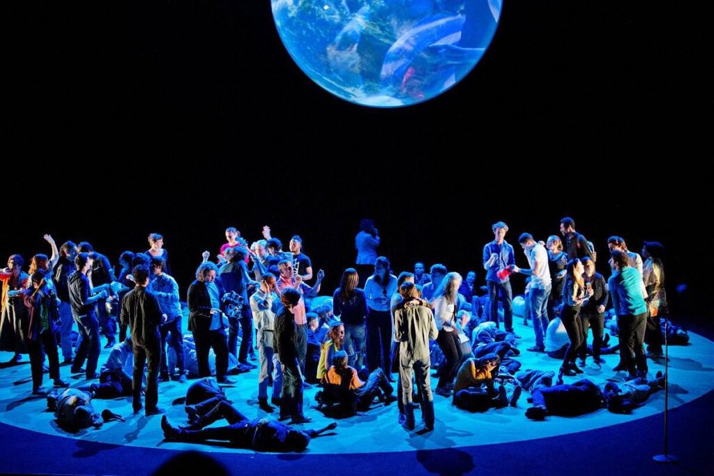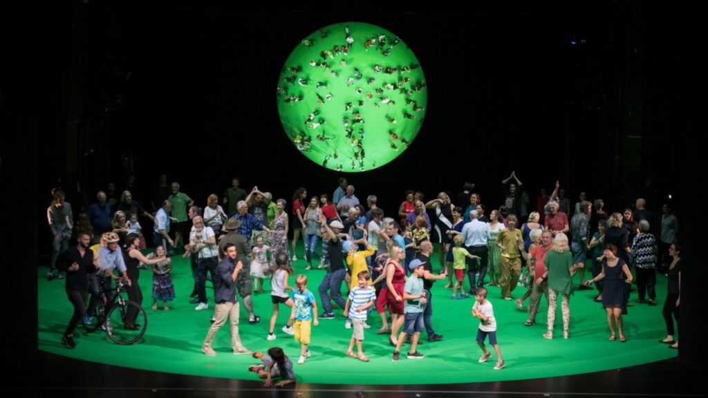 100 ciudadanos que representan su ciudad en 5 criterios constituye una muestra, una sección cruzada de la sociedad, ahora reunida en un nuevo grupo de imágenes en continuo cambio sobre un gran escenario giratorio. Las personas son clasificadas de acuerdo a la edad, la dirección postal, el género, las tendencias políticas, preferencias de locales de fiesta, medios de transporte… y con un poco de dramaturgia, poco a poco, como un mar de voces, como un cuerpo geométrico de 100 metros cuadrados de escenario…