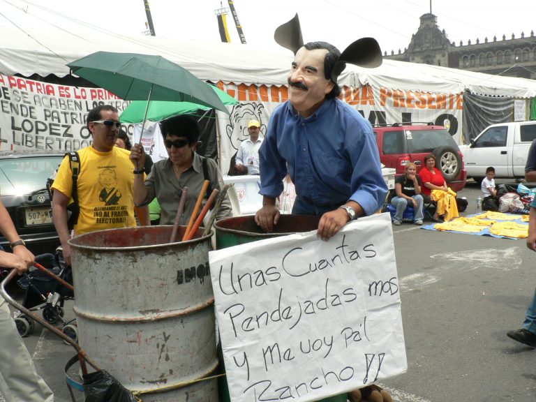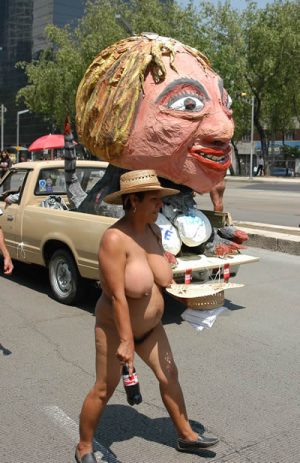 A partir de diciembre del 2001 las manifestaciones recurrieron a formas carnavalescas y paródicas. La sociedad fue tomada por acontecimientos que instalaron una especie de surrealismo cotidiano. La realidad superó a los imaginarios estéticos, la obscenidad irrumpió en el panorama de la política común. Fue en este marco que el espectáculo de la sociedad autoritaria llegó a ser carnavalizado por los espectáculos de la sociedad civil, como respuesta inventiva: “los que recibieron un golpe lo devuelven simbólicamente como golpe de efecto, golpe de teatro” (Finter, 37). El espectáculo del ‘corralito económico’ tuvo su doble paródico en las múltiples acciones lúdicas, espontáneamente organizadas por la población. Los espacios públicos fueron invadidos por ciudadanos que utilizaban insólitos recursos para protestar, creando situaciones performativas y teatrales: personas vestidas de bañistas acampaban en las instalaciones bancarias, multitudes armadas de cacerolas y utensilios culinarios tomaban las calles, los camiones descargaban materia fecal a las puertas de los bancos. Un nuevo cuerpo de actores emergía en aquellas teatralizaciones: desempleados, piqueteros, ahorristas, ciudadanos comunes, instalando nuevos escenarios y transmutando la violencia en performance política.