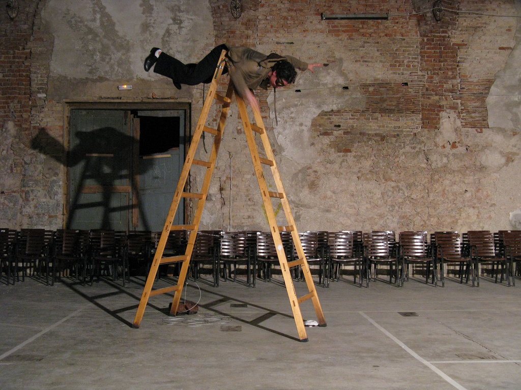 As the performance speaks of space travelers, that is cosmonauts, its scientific discourse finds its interpreter in the role of Tomislav Medak who as cosmonaut and ufologist masterfully traverses the intricate landscape of Russian avant-garde. In terms of artistic performance, or to be more precise dance performance, Ana Kreitmeyer, Zrinka Užbinec and Pravdan Devlahović use charm and slapstick comedy inspired episodes to visualize the narrative. «The League of Time» covers a time span of four decades, from the twenties to the sixties of the 20th century, revealing itself to the spectator as a field of mass hallucination, shared utopia in which everything is possible, making for a thoughtful choreography which is a child of his age – a child of postmodernism, a time when we become aware that utopias, unfortunately, do not exist.