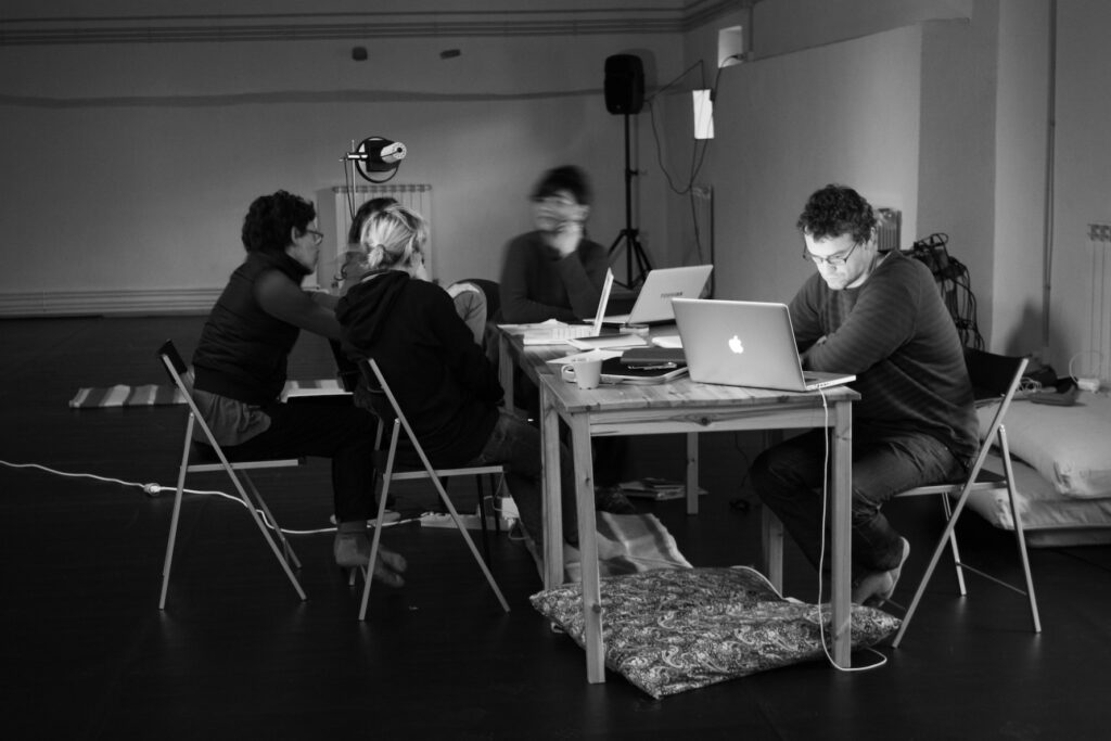 Tras la experiencia durante el primer laboratorio de Autonomía y Complejidad en Bilbao, decidimos invitar de nuevo al artista Janez Janša, del instituto Maska, a que desarrollara en mayor profundidad su propuesta del seminario anterior. Para ello, contamos con más días de seminario y lo organizamos en el espacio de creación Azala, en el pueblo de Lasierra (Araba) donde se han realizado varios de los seminarios posteriores.