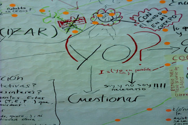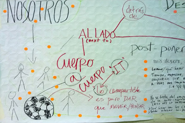 ¿Podríamos tomar el espacio con/en el que nos movemos como un lugar común el cual pertenece por igual a todos y cada uno de los participan en él? si es así, ¿cómo éste puede ser sostenido y dado por todos y cada uno de los que participan de/en/con él?, ¿cuales serian los lugares de resistencia y alteridad que estarían condicionando la (des)apropiación y/o producción común? ¿Qué clase de aperturas, fisuras y fugas discursivas y corporales necesitamos generar para ir más allá de manifestaciones preestablecidas?