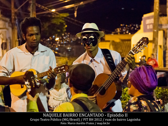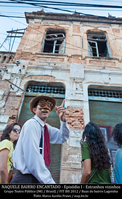 Naquele Bairro Encantado (En aquel barrio encantado) es el primer espectáculo del grupo Teatro Público, concebido como una “habitación teatral”. El proceso de trabajo empieza con una investigación acerca de las costumbres e historias del barrio Lagoinha, uno de los más antiguos y tradicionales de la ciudad de Belo Horizonte, actualmente en situación de degradación y abandono por el poder público, que poco contribuye con la preservación de su memoria simbólica y patrimonial.