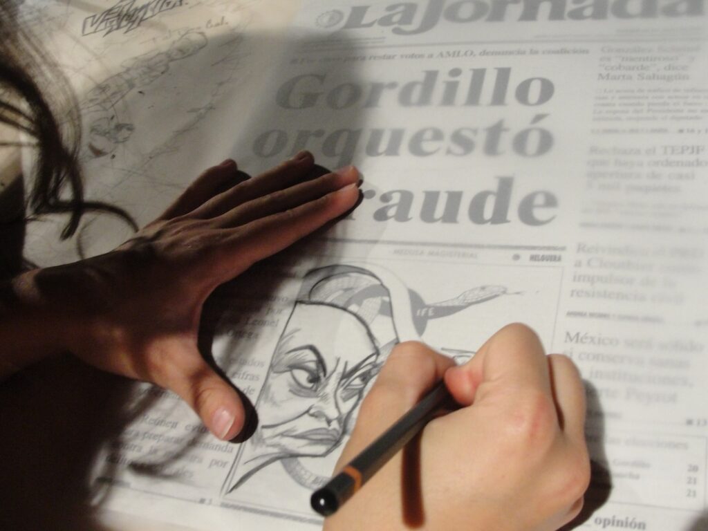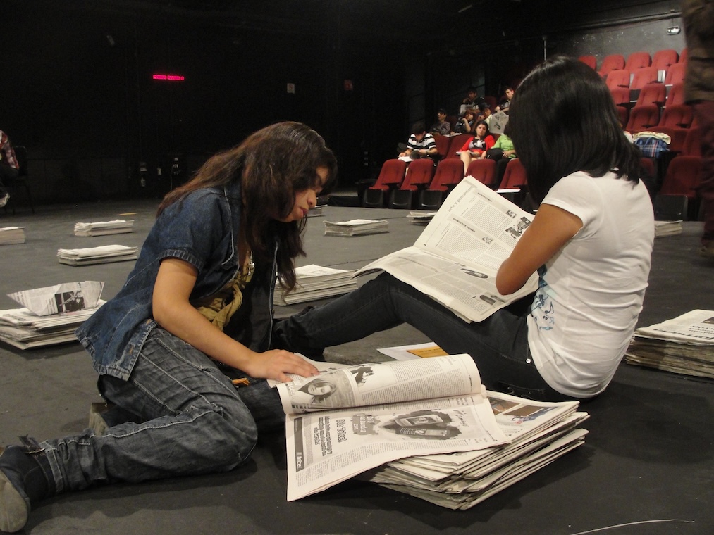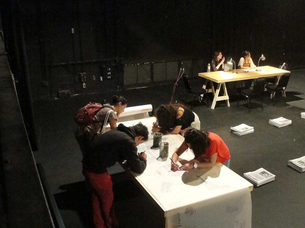 De ser ciertos los más recientes datos de la prensa, en el sexenio pasado  desaparecieron más de 25 mil personas. He aquí el tono del gobierno  calderonista. Pero en los intersticios de las cifras, las complicidades estatales y  los horrores cotidianos los paisanos hemos respirado, hemos soñado y hemos  tejido y destejido amores y resentimientos. La vida ha seguido. Y aunque la vida  no puede expresarse en estadísticas quizá pueda condensarse en microdosis de  deseo. Y he aquí que en el teatro El Galeón se encontraban sobre el piso los  números del diario La Jornada desde el 1 de diciembre del 2006. En la periferia  se hallaban unas mesas donde podían consultarse. Otra más disponía papel  albanene y pinturas para calcar imágenes del diario o, simplemente, imprimir un  comentario. En otro extremo del escenario, una consola funcionaba como  pequeña estación de radio donde se programaban y recibían testimonios del  paisanaje acerca de sus experiencias de vida sexenal. El espacio estuvo abierto  desde el 8 de octubre hasta el 9 de noviembre de lunes a viernes.  De manera que mientras se recorría este “teatro de la memoria” y se  escuchaban los testimonios que contrapunteaban las noticias, también se  encontraban disponibles micrófonos para que los ciudadanos presentes  intervinieran en la charla. Uno se enteró así de un buen hombre que lidia con las  adicciones de su hija, de una chica con avatares en el inicio de la vida  profesional o de un joven que ahí mismo se enteró de que el sueño recurrente  en el que veía cómo mataban a su tío no era un sueño sino un recuerdo  reprimido por la familia. Por si fuera poco, se tenía además un circuito cerrado  en el que se apreciaban las obras del monumento calderonista en el Campo  Marte. Monumento allá, memorial acá.  Lo que viene generó un archivo de afectos apuntando hacia el futuro, lo que  continúa entrañablemente la línea de marcación personal que Teatro Ojo (Héctor  Bourges, Karla Rodríguez, Laura Furlan, y otros) ha dedicado al Estado fallido y  reivindica el poder de la escena como ágora, como espacio de expresión de los  cuerpos en presencia, pero que también se pregunta – a la manera en que lo  hicieron las comisiones de cultura de los Indignados- por la responsabilidad de  los artistas que producen su obra con recursos que provienen de los impuestos  de todos.