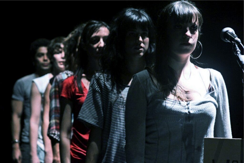 La estrategia escénica consiste en utilizar el documental como guión. El video (cuya duración es de 50 minutos) corre marcando la duración de la obra, al tiempo que una serie de acciones suceden. No hay imagen pero se escucha el audio, que veces desaparece de las bocinas y pasa a voz de los intérpretes. A partir del concepto de reconstrucción y sus variantes apropiación, recreación y adaptación, se remontan secuencias de la pieza original.