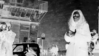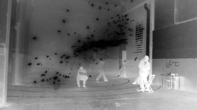 Radiografía n.º 5: Implosión impugnada 15B Coreografía a base de petardos, humo, sonido, participantes y vecindario (registro radiográfico defectuoso a falta del sonido y el vecindario).