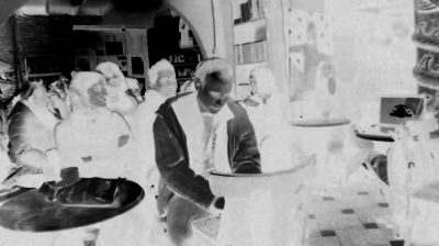 La mascletada provoca ruido y humo dentro de la lonja, por lo que algunas vecinas salen a la ventana o a la acera alarmadas por el sonido. Integrantes del grupo no participantes en la acción entablan conversación con ellas. Esta acción estimula la consciencia de un “otros”, fuera a parte del “nosotros” en el que se había centrado el encuentro, y con el que se descubre de manera inesperada una interdependencia. Esta acción grupal será un hecho detonante de tensiones con los responsables del local y desencadenante el resto de los encuentros. Las normas descriptivas de lo que la mayoría de personas hace en un espacio como este (un bajo de un edificio de viviendas en una zona residencial) no se instauran como factores de referencia y las normas impuestas, las que indican lo que es adecuado hacer o no hacer en una situación dada (en este espacio, atenerse a las normas de convivencia), son también pasadas por alto. Pareciera que el estado de excepción del arte posibilitara cierta burbuja de aislamiento frente a juicios morales o cívicos, “la estética en el sentido de aisthesis: un régimen autónomo de la experiencia que no es reducible a la lógica, la razón o la moral”9. Jueves, 13 de diciembre de 2013 La mañana se inicia a distintas velocidades y las personas se van agregando en función también de la vida nocturna del día anterior. El hecho de que esté planeado el visionado de la película “Zabriskie Point” en la librería asociativa Sahiri parece dar cierta sensación de control sobre el transcurrir del encuentro. Aún así, algunas partes de la organización siguen sin tener una asignación de roles y tareas claro, por lo que el transcurrir resulta un tanto torpe.