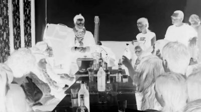 La comida se efectúa en el Solar Corona. Esa es una de las tareas claramente asignadas, quedando la comida y la cena a salvaguardia del devenir y la eficacia grupal. De vuelta de la comida, es el momento de socializar con las personas interesadas y que se incorporarán al resto del encuentro, la actividad que ha tenido el grupo de trabajo. Este es el momento de apertura del grupo a nuevas integrantes, un paso delicado dado la tendencia de los grupos a crear un adentro (las personas que ya se conocen entre ellas) y un afuera (las personas nuevas) difícil de desdibujar10. Se hace para estas personas un resumen de lo acontecido durante las jornadas anteriores. Sin embargo, las consecuencias generadas por la acción grupal performativa de la mascletada hacen que este tema pase a tener una atención de primer orden: los responsables de La Calderería piden al grupo que deje de hacer uso de dicho espacio para el resto de las jornadas y se decide recurrir al Centro de Cultura Contemporánea Octubre, que se pone a disposición del evento. El tono que toma este anuncio es serio y la situación se expone al grupo de manera abierta. El grupo asume la responsabilidad, pero claramente quienes ponen sus relaciones y reputación en juego son las personas promotoras.