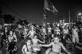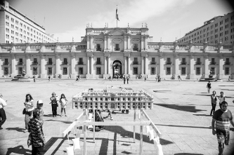 Más de 30 organizaciones sociales levantan el Palacio de la Moneda y lo trasladan al barrio con la menor renta per cápita de la ciudad. En este caso el emblemático barrio de La Legua. Cada colectivo se hace cargo de llevar el palacio a hombros durante un tramo en el que decide qué comunicar desde el balcón y si adornar el tramo con música, baile o el silencio.