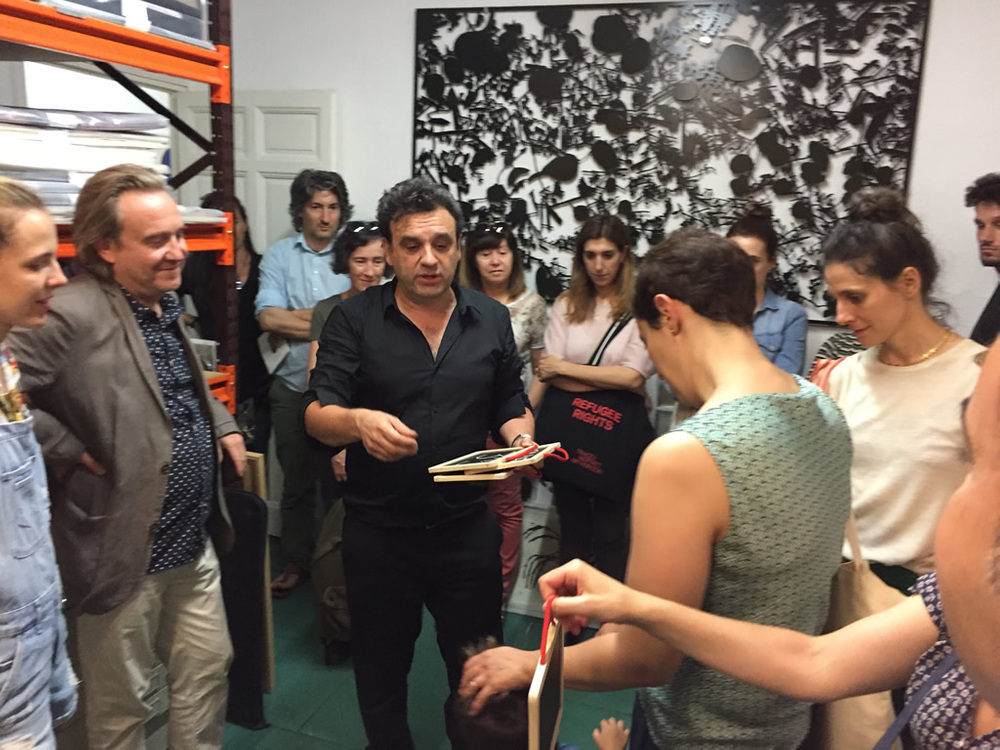 El artista hizo una explicación pública de su trabajo consistente en un recorrido por las distintas piezas de la muestra, activando diversas estrategias para hacer más eficaz la relación entre el que hace y el que mira.
