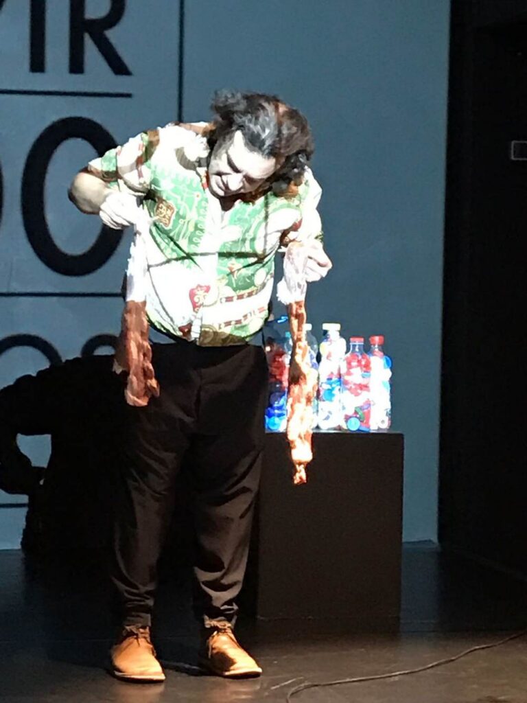 La anticelebración de la mitad de la vida, compartida con el público que es el único que se alegra, se ríe y sufre con el autor, reconociéndose en él y odiándolo en ocasiones.