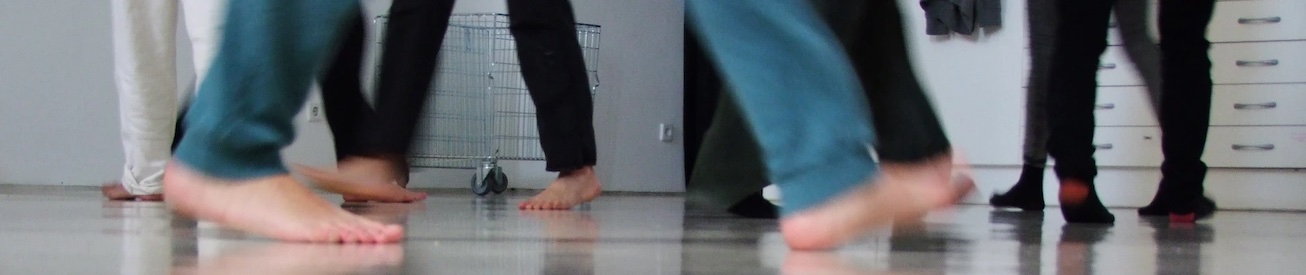 Descripción: “From the bottom of your heart, pray to be released from image. The image is a prison of the soul, your heredity, your education, your vices and aspirations, your qualities, your psychological world. I have walked behind the sky. For blue there are no boundaries or solutions.” Derek Jarman. La práctica corporal que hemos estado compartiendo es la vibración como punto de encuentro para tres cuerpos vivos y pulsantes hechos de diferentes deseos, la vibración como práctica universal que puede abrir el cuerpo hacia múltiples acciones y lecturas de significados sin el deseo de controlar todavía el trayecto de la investigación. De esta forma nos preparamos para recibir información y relacionarnos con el espacio y los otros cuerpos a través de una percepción vívida de los paisajes internos y externos. Estamos explorando la interrelación, la interdependencia y la intersección de los cuerpos, que continuamente son afectados y se afectan, tanto en la práctica como en las discusiones detrás del trabajo. Superponiendo y poniendo en juego diferentes capas, como sonido/voz, objetos y imágenes, nos preguntamos: ¿Cómo nos damos instrucciones en las prácticas para crear un lenguaje común, guiar nuestras acciones y hablar nuestros pensamientos? ¿Qué estamos produciendo con nuestras maneras de relación y a través de la manipulación del cuerpo? ¿Qué tipo de imágenes estamos produciendo a cada rato y qué atmósferas aparecen en el espacio?