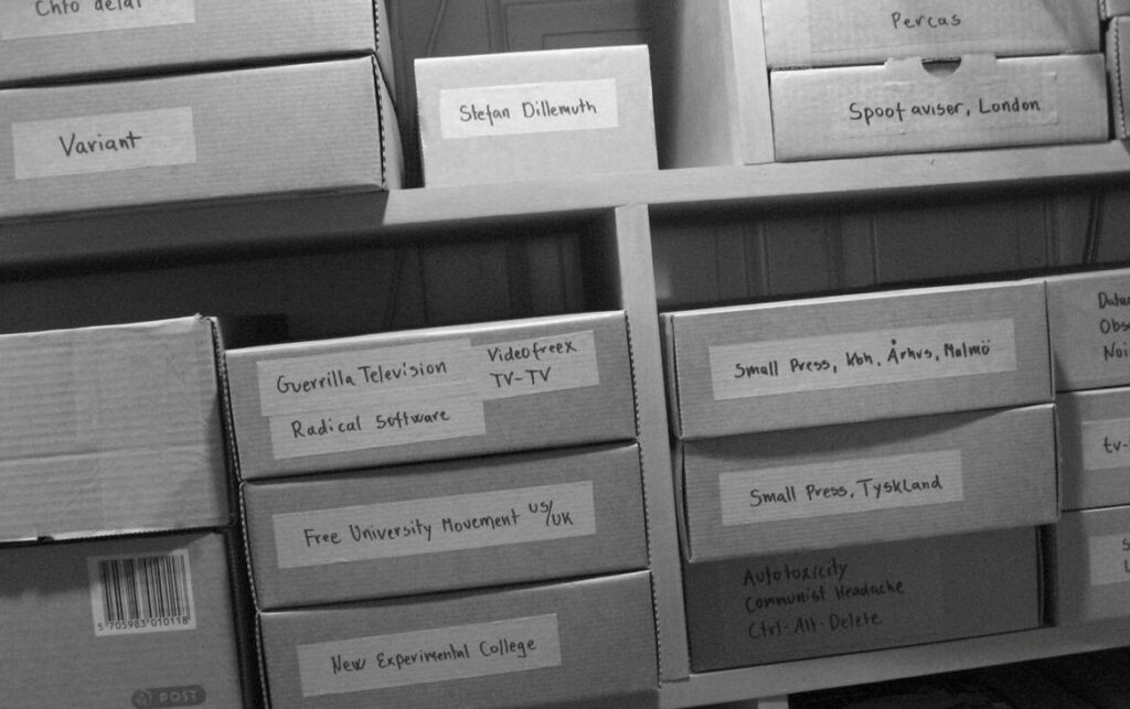 Elena Blázquez: En mayo de 2001, dos artistas, Henriette Heise y Jakob Jakobsen, declararon su residencia en Læssøesgade 3 sede de la Universidad Libre de Copenhague. La idea era transformar su casa en un espacio abierto para la investigación social y educativa. Un manifiesto titulado “Todo el poder para la Universidad Libre de Copenhague” sirvió de declaración de intenciones. Mientras tanto, el colchón del apartamento servía como lugar de acogida de residentes, la cocina como espacio de proyección, y el dormitorio como centro de archivo y publicaciones. A partir de estas estrategias, Heise y Jakobsen llevaron a cabo una investigación acerca de las transformaciones de la producción de conocimiento y la práctica artística cuando estas se llevan a cabo colectivamente en los confines de lo íntimo y lo doméstico: en un salón convertido en sala de lectura. Con este proyecto en mente, decidimos iniciar nuestra particular propuesta educativa a través de la Universidad Libre de Madrid. Una idea que surgió de una tarde de biblioteca, después de una suma de pausas y cafés. Estábamos dos o tres en ese momento pero no fue difícil extender la idea a otros cuantos que creíamos podían estar interesados.