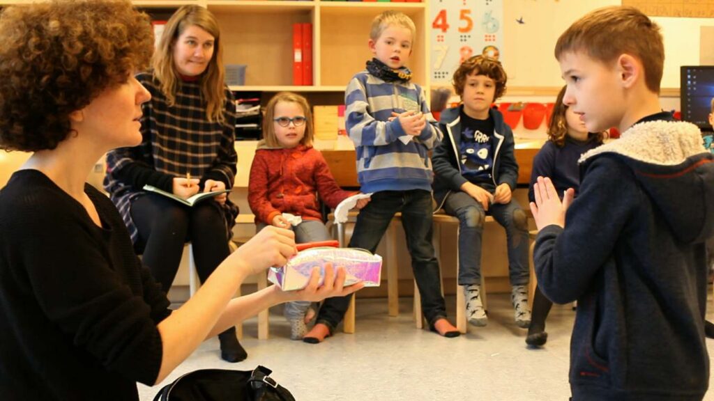 Los niños de la escuela V-tex school en Kortrijk, Bélgica, enseñan neerlandés a Maria Jerez. Durante tres semanas los roles de la educación cambian: 33 niños enseñan y una adulta aprende, pero durante este cambio de roles, el interés no es la transferencia simétrica de poder, sino el establecimiento de una situación frágil para todas las partes, un espacio donde nadie sabe. Este proyecto presta atención al encuentro, a todos los momentos en que nombramos algo por primera vez, al pensamiento que está detrás del lenguaje, al poder político de los procesos de aprendizaje, a un método de enseñanza colaborativo, a los malentendidos como un lugar de oportunidad, a la relación con alguien que viene de otro mundo, una alien que aterriza en la escuela, con la intención de crear mundo juntos y construye un espacio donde lo desconocido se implementa como un lugar deseable de potencialidad.