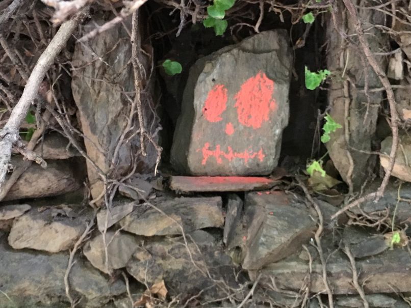 La exposición muestra el resultado de dibujar sobre las piedras, procedentes de distintos lugares, cráneos, que terminan siendo caras incluso amables, por la necesidad propia de avanzar hacia algo, de muerte a vida, de piedra a animal o humano.