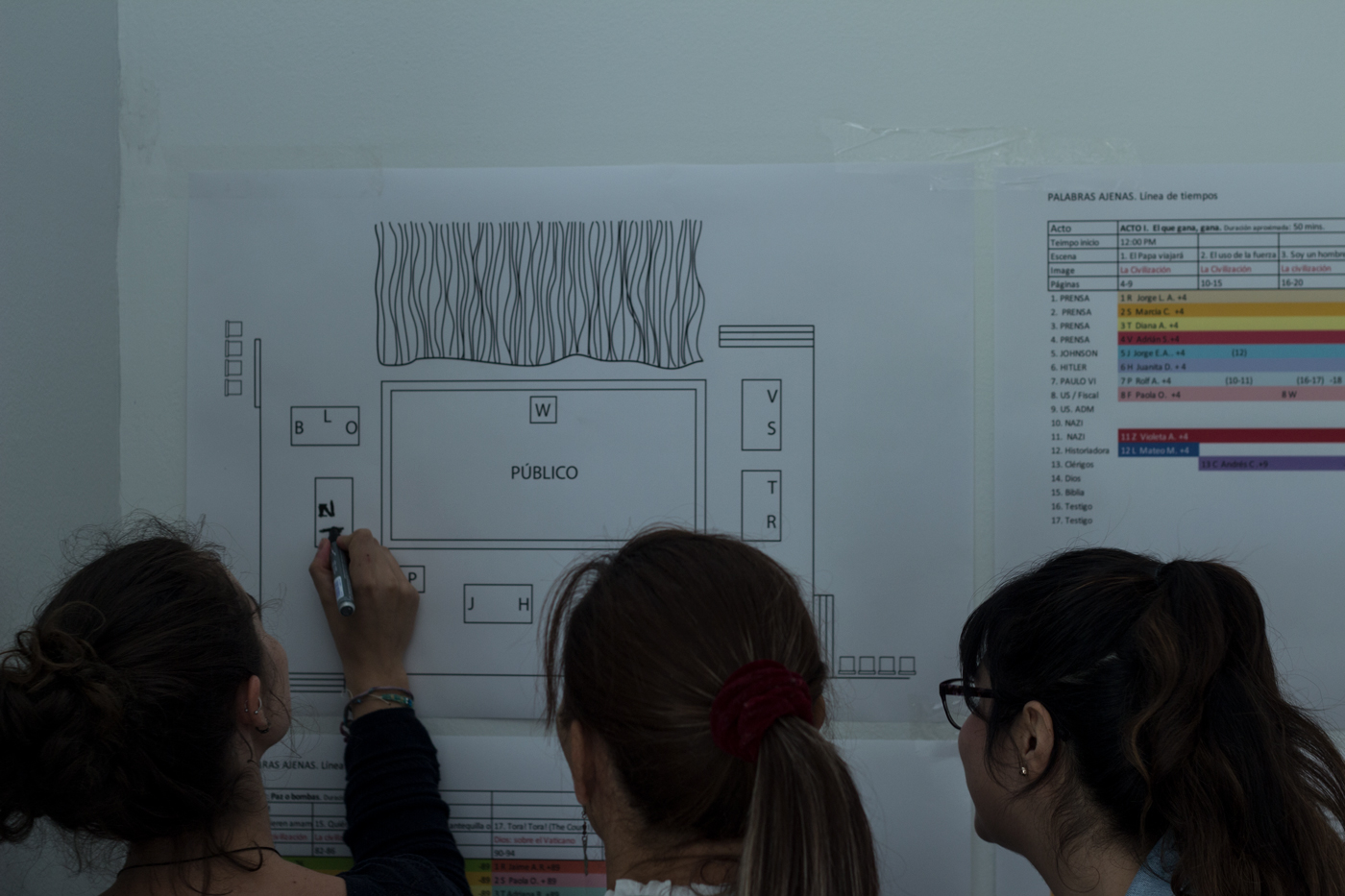 Prensa. Mateo Mejía. Paola Oña, Diana Acosta, Franklin Dávalos. Foto: Santiago Sepúlveda
