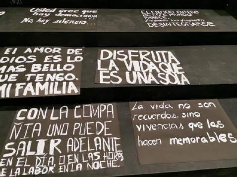 Lxs vecinos del Callejón Magallanes han venido a dejar frases para hacer carteles que decorarán el barrio durante la vida del Museo.