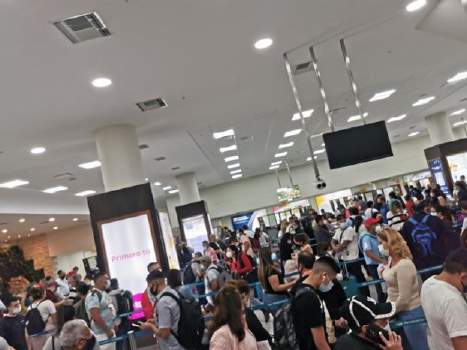 Es la tercera larga fila que hacemos de salida del aeropuerto. Ha habido gritos y rostros de desánimo.