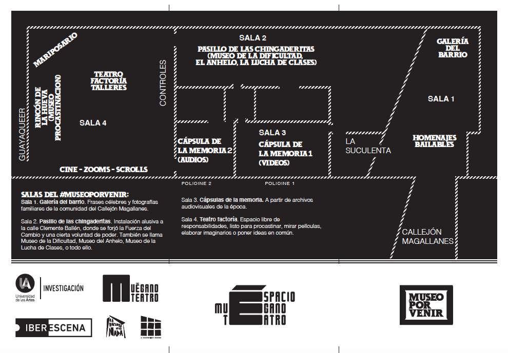 Entre otrxs, participarán en el Museo los teatreros mexicanos Rubén Ortiz (La Comuna) y Ricardo Andrade (El Teatrito de Mérida); el cineasta Manolo Sarmiento («La muerte de Jaime Roldós»); lxs artistas visuales Oswaldo Terreros y Gabriela Cabrera, (Memorial a Jaime Roldós y Martha Bucaram en Guayaquil); el artista sonoro Kike Landívar; las estudiantes Gabriela Tapia, Miryam Carbo y Érika Sánchez, miembrxs de un Grupo de Investigación de la Universidad de las Artes del Ecuador, institución que también apoya el proyecto; la artista, curadora y editora Romina Muñoz (Festina Lente); el creador y activista Víctor García (Guayaqueer); la activista y académica feminista Cristina Burneo (Corredores Migratorios); la banda ecuatoriana Lolabúm; lxs creadorxs y académicxs chilenxs Voluspa Jarpa y Mauricio Berría; y el propio Muégano Teatro: Pilar Aranda, Santiago Roldós, Estefanía Rodríguez, Gabriel Quimis y Christian Guerrero.