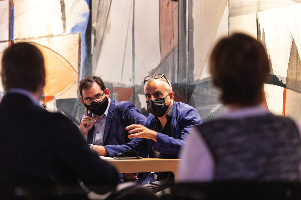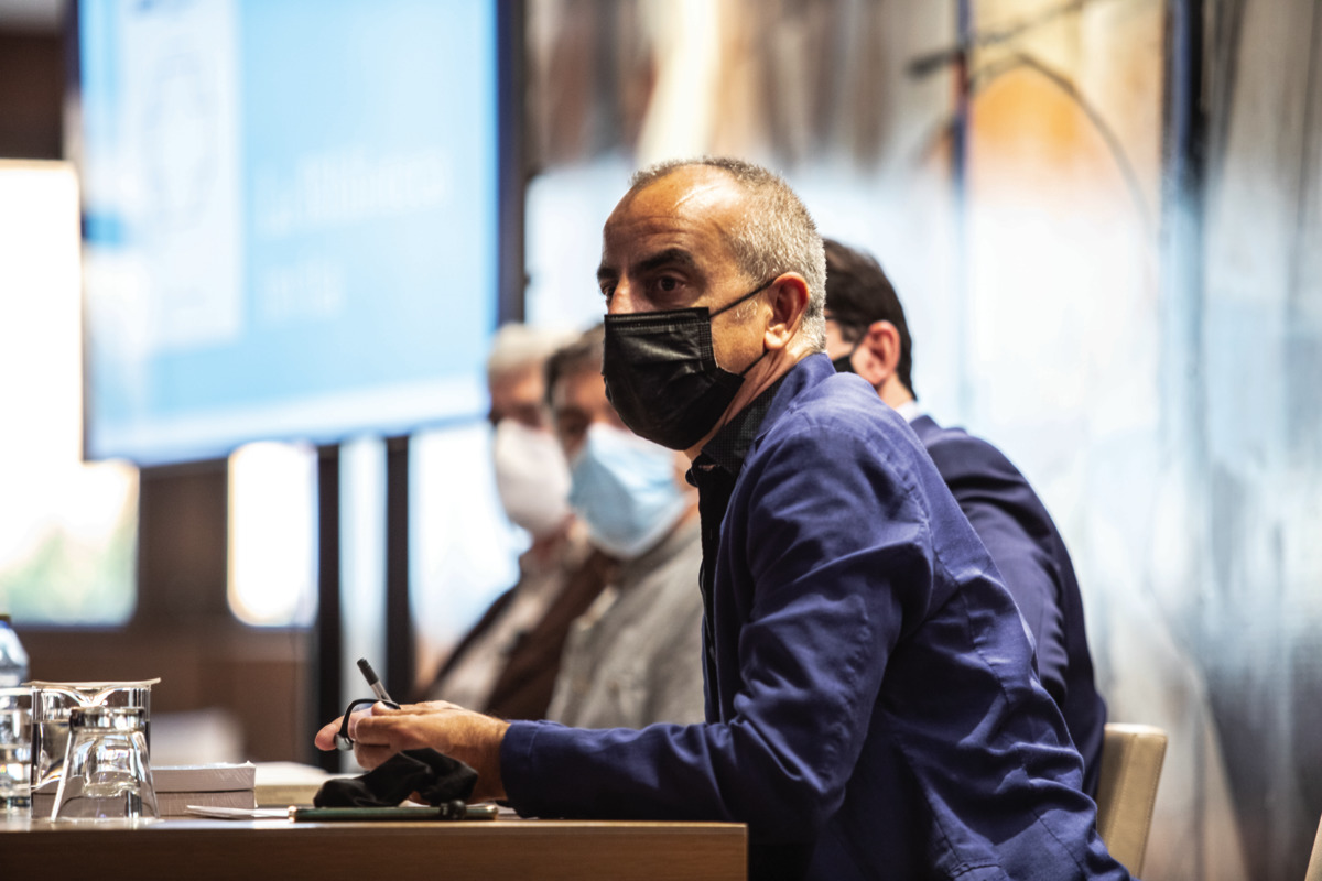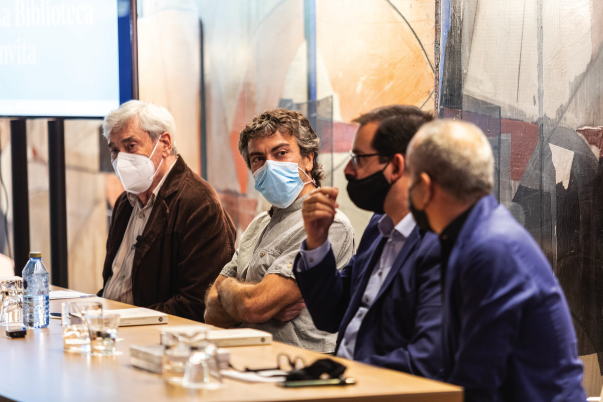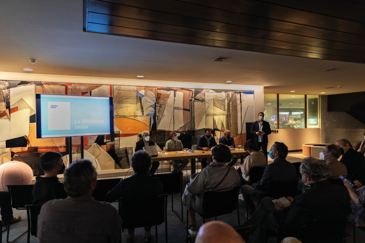 Con motivo de la restauración de la maqueta del Teatro Móvil de Javier Navarro de Zuvillaga, expuesta en la Bienal de Sao Paulo de 1975 y ahora en las salas de la Biblioteca de Teatro de la Fundación Juan March en exposición permanente, se presentó el libro “Teatro Móvil. La contracultura arquitectónica a escena”, de Fernando Quesada. Además del autor del libro participaron el director de la biblioteca Luis Martínez Uribe, Javier Navarro de Zuvillaga, Óscar Cornago y Eduardo Prieto.