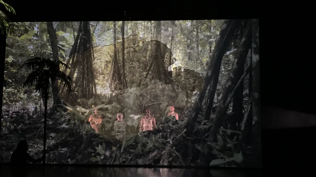 Entonces, cuando pensáramos en teatro, ya no imaginaríamos un espacio arquitectónico con gradas, con una función simbólica paralela a la de otros espacios como los templos o el ágora, sino en un espacio natural, donde no hay diferencia entre escena y sala, y por tanto no hay propiamente representación, ni teatro, sino en el que la mímesis se aglutina con el pensamiento mágico en una experiencia de vida. ¿Cómo serían las artes vivas que podrían haber tenido origen en la selva amazónica? ¿Qué rasgos tendría una producción artística que reivindicara en el Amazonas su origen mítico?