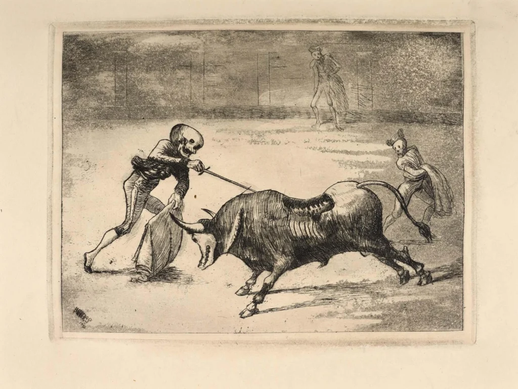 Enrique Herreros. La tauromaquia y la muerte. 1946. Aguafuerte y aguatinta sobre papel. 37 x 52 aprox. MNCARS 2