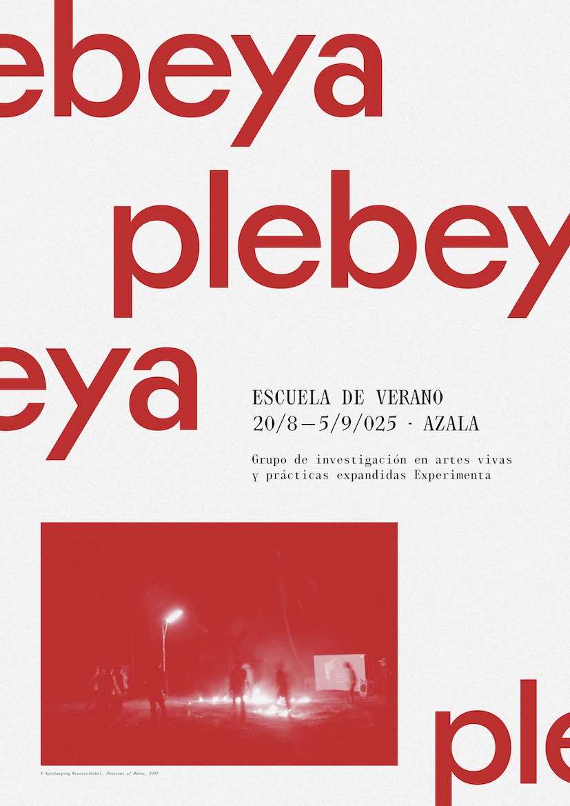 plebeya es el nombre de un programa de estudios en torno a la escritura y la performance imaginado por María Salgado e Idoia Zabaleta que tendrá lugar en el espacio de creación artística Azala (Lasierra, Vitoria) entre el 20 de agosto y el 5 de septiembre de 025 como parte de las actividades del grupo de investigación EXPERIMENTA