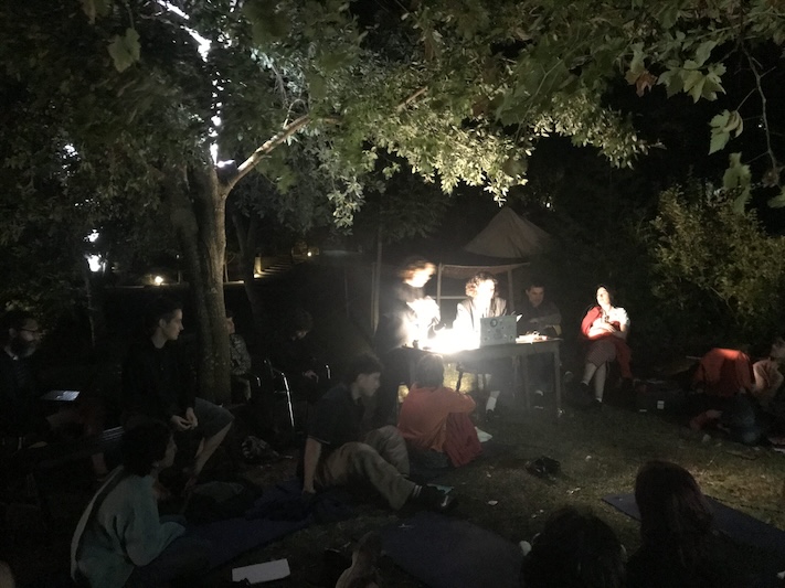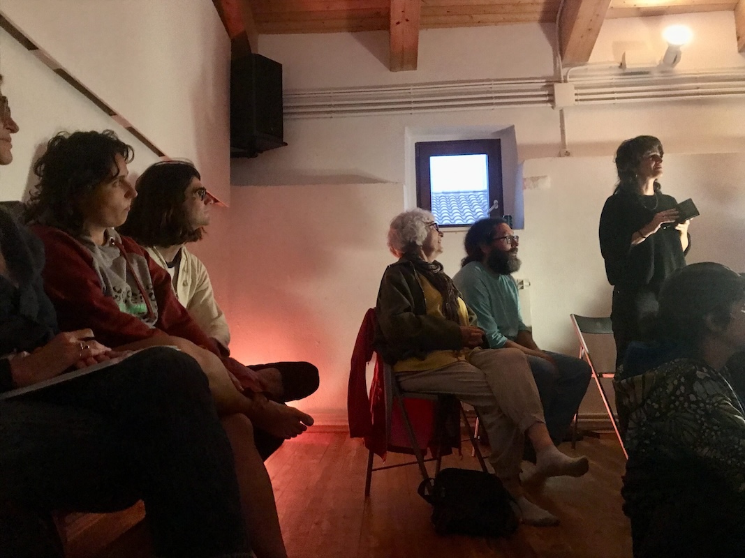 Lxs tres investigadorxs y componentes de la revista Archivo Orsini, Juan de Salas, Clara Hardinguey y Claudio Hontana; el editor de Kriller 71, traductor y poeta Aníbal Cristobo; la poeta y coordinadora de Espai Crisi Claudia González Caparrós; la profesora de Teoría de la literatura en la UB Virginia Trueba; el comisario, ensayista e investigador en artes escénicas José Antonio Sánchez; la artista sonora Sarah Rasines; la investigadora en poesía contemporánea Andrea Navacerrada; la poeta Patricia Esteban; la profesora en la facultad de bellas artes de la UCM Selina Blasco; miembrxs activxs y fundantes del core del colectivo Seminario Euraca (P. Esteban, Marta F. Salgado, Chus Arellano, Beatriz Pérez Repes, S. Blasco, L. Pichel, A. Navacerrada); la artista M. Benito y el escultor Josu Bilbao son les invitades a llevar las sesiones de este programa nocturno público y abierto a cualquiera que quiera acercarse hasta Azala y hacer noche*