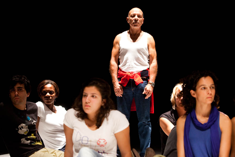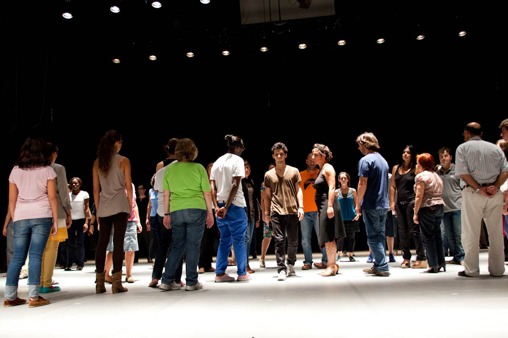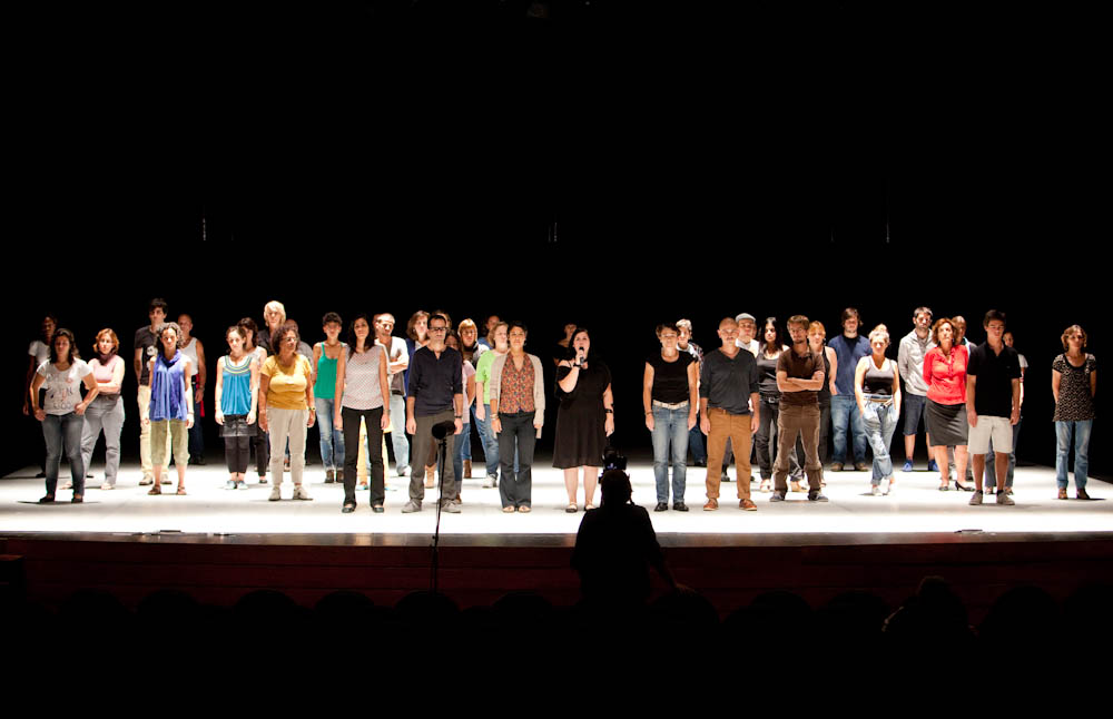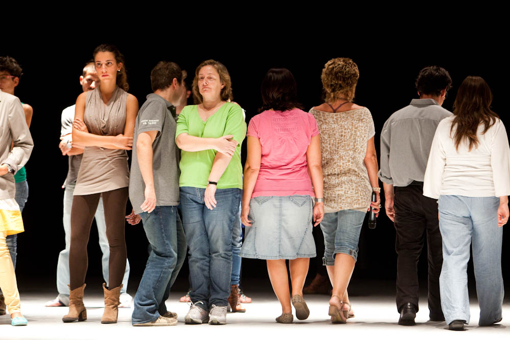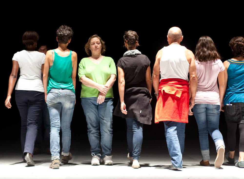 100 personas en el escenario. Un paisaje de gente con diferentes profesiones reclamando su posición en la sociedad, individual y colectivamente, cartografiando una especie de «atlas» de la cohesión compleja de un tejido social.
