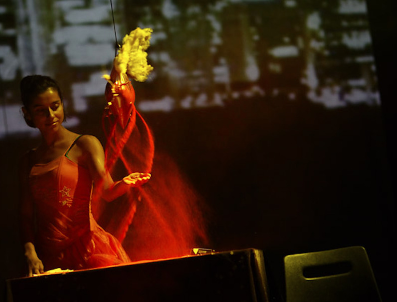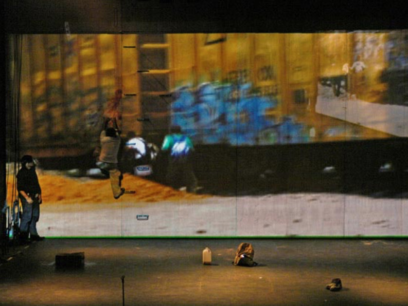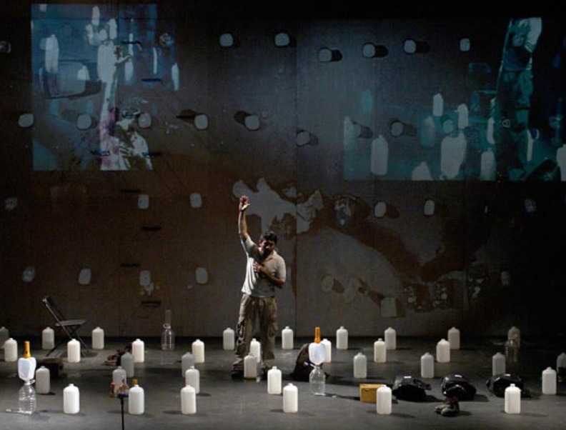 Un muro inmenso cierra el horizonte, un muro que es calificado como “el muro de la vergüenza” por los mexicanos. Esta pared monolítica ilustra la ambigúedad de las relaciones fronterizas entre México y Estados Unidos. Los aspirantes a cruzarlo son siempre numerosos; los coyotes cada vez más ávidos y los controles policíacos de la frontera americana cada vez más violentos. Jorge Arturo Vargas posa una mirada muy exacta sobre la condición de los migrantes. A través de una forma teatral nueva y a veces espectacular, coloca en la escena los intentos cotidianos de los indocumentados mexicanos en busca de el Dorado: un hombre que ha partido y no se sabe nada de él; su destino: Texas; una mujer que en la réplica de ella misma, busca reconstruirse y, buscando una identidad, un cuerpo, un itinerario, entabla un diálogo imaginario con el ausente. A lo largo de la pieza, las personas se desdoblan, se multiplican en rostros, en cientos de millares de identidades que se parecen, que forman la imagen de un pequeño pueblo en eterno exilio que se vacía inexorablemente. Amarillo es un espectáculo de teatro físico, comprometido, en el cual los actores realizan una interpretación digna de un ballet.