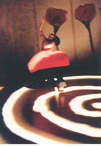 Pero la experiencia de éste durante el espectáculo no se reducía a la reconstrucción de ese universo objetual (inversión del desorden que en la escena final Margarit provocaba separando y dispersando las piezas de un juego de muñecas rusas), ya que sobre todo le estaba reservado compartir el placer que la coreógrafa-intérprete desbordaba más allá de la disciplina circular y la precisión de su gesto. Vestida de rojo y animada por sonoridades mediterráenas, Margarit danzaba en giros abiertos, se elevaba sobre las puntas, saltaba caprichosamente, sin renunciar a momentos de recogimiento en medio de la brisa que ella misma creaba con el desplazamiento y el giro incesante; huidas a tierra, rebeliones, afirmación en la verticalidad que a veces flaqueaba y que requería la aparición de la espiral proyectada sobre el suelo, paralela a la que trazaban sus pies, su tronco, sus brazos en un prolongado salir de escena.