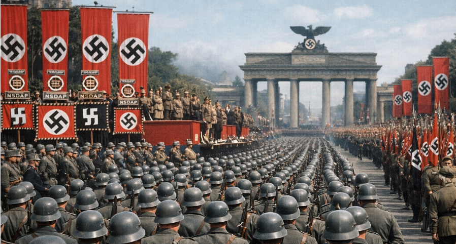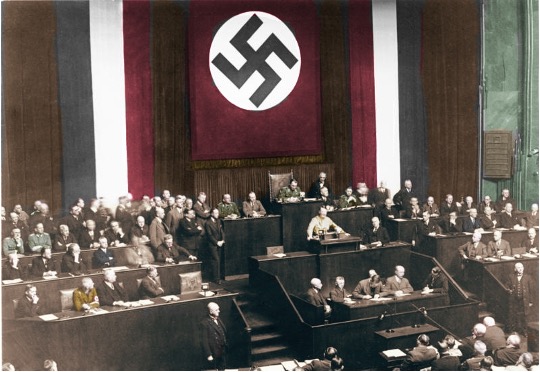 Parlamento Nazi. Tras la aprobación de la Ley de Plenos Poderes en marzo de 1933, se prohibieron todos los demás partidos distintos al Partido Nacional Socialista Obrero Alemán. [Imagen de dominio público, disponible en: Title 17, Chapter 1, Section 105 of the US Code].
