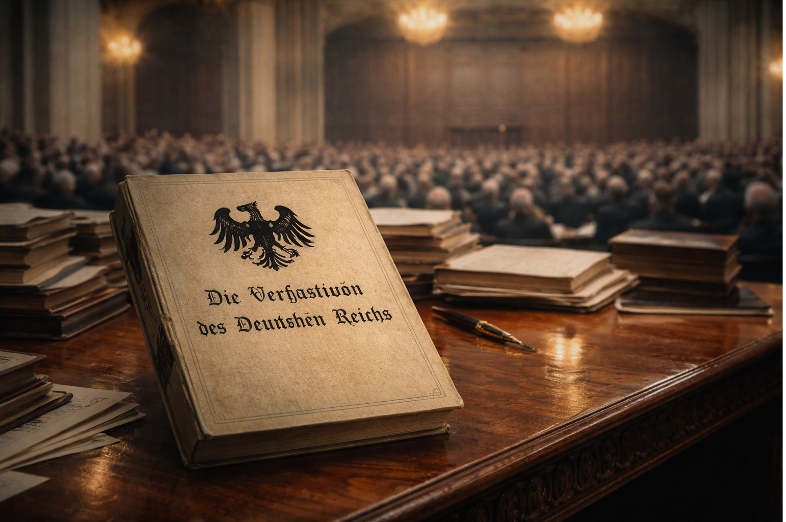 La Constitución de Weimar, aprobada el 14 de agosto de 1919, fue la constitución vigente en Alemania tras la Primera Guerra Mundial, hasta la caída de la república en 1933. Fue una de las constituciones más progresistas y democráticas de su época. [Imagen elaborada con ChatGPT 5.2]