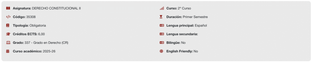 Constitucional II – Segundo curso – cuatrimestral – 6 créditos