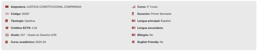 Justicia Constitucional Comparada – Cuarto curso – optativa – 4,5 créditos