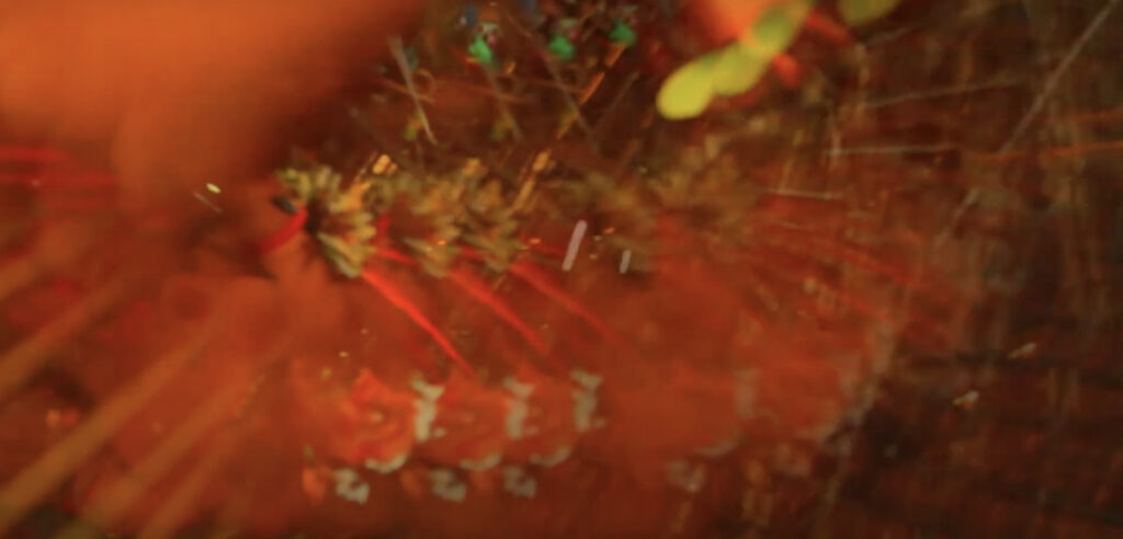 Trágame nube es una instalación fílmica concebida para desplegarse en ambas caras de una misma pantalla, desdoblando la experiencia cinematográfica en un espacio de percepción expandida. A partir de un montaje dialéctico de imágenes en 16mm, la pieza disloca la frontalidad del cine tradicional e implica a la espectadora en un movimiento circular, invitándola a recorrer físicamente la proyección. Inspirada en las ideas de Val del Omar sobre cine y percepción, Trágame nube desmonta la unicidad del punto de vista de la cámara y el proyector, proponiendo una experiencia envolvente donde la imagen se vuelve táctil y el tiempo fílmico se pliega sobre sí mismo. A través de este dispositivo, la obra indaga en la materialidad del cine, su espacialización y su potencial para reformular la relación entre imagen, espectadora y arquitectura de la proyección. Trágame nube es un encargo del Museum of the Moving Image (NY) para la exposición Cinema of Sensations: the Overflowing of Val del Omar (2023).