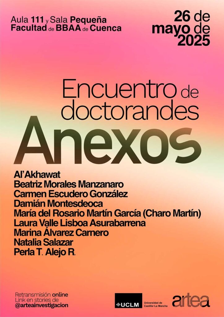 El 26 de mayo se celebró en la Facultad de Bellas Artes de la Universidad de Castilla-La Mancha, en Cuenca, el Encuentro de doctorandoes: Anexos. Una jornada de encuentro, de diálogo y puesta en común entre personas en proceso de investigación doctoral.