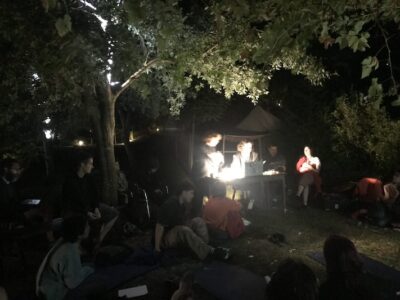 Lxs tres investigadorxs y componentes de la revista Archivo OrsiniJuan de SalasClara Hardinguey y Claudio Hontana; el editor de Kriller 71, traductor y poeta Aníbal Cristobo; la poeta y coordinadora de Espai Crisi Claudia González Caparrós; la profesora de Teoría de la literatura en la UB Virginia Trueba; el comisario, ensayista e investigador en artes escénicas José Antonio Sánchez; la artista sonora Sarah Rasines; la investigadora en poesía contemporánea Andrea Navacerrada; la poeta Patricia Esteban; la profesora en la facultad de bellas artes de la UCM Selina Blasco; miembrxs activxs y fundantes del core del colectivo Seminario Euraca (P. Esteban, Marta F. Salgado, Chus Arellano, Beatriz Pérez Repes, S. Blasco, L. Pichel, A. Navacerrada); la artista M. Benito y el escultor Josu Bilbao son les invitades a llevar las sesiones de este programa nocturno público y abierto a cualquiera que quiera acercarse hasta Azala y hacer noche*