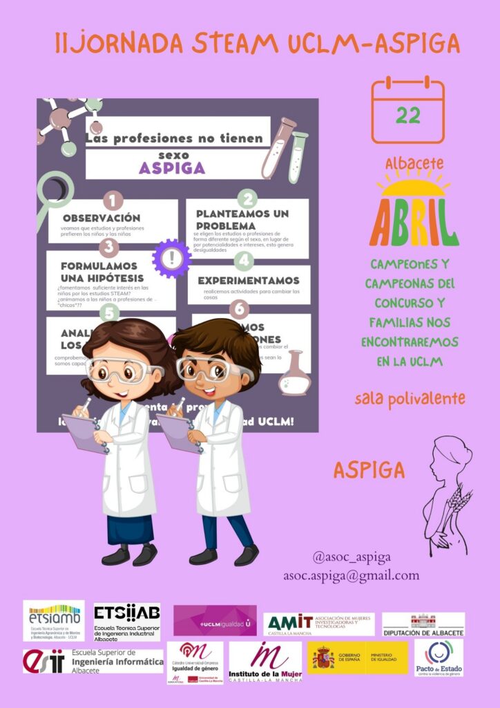La II Jornada STEAM UCLM-ASPIGA se celebrará el próximo 22 de abril en la Universidad de Castilla-La Mancha en Albacete, donde reunirá a alumnado, profesorado y familias con el objetivo de fomentar vocaciones científicas desde una perspectiva de igualdad. Bajo el lema “Las profesiones no tienen sexo”, la actividad ofrecerá talleres, charlas y dinámicas participativas orientadas a romper estereotipos de género en ámbitos como la ciencia, la tecnología y la ingeniería.