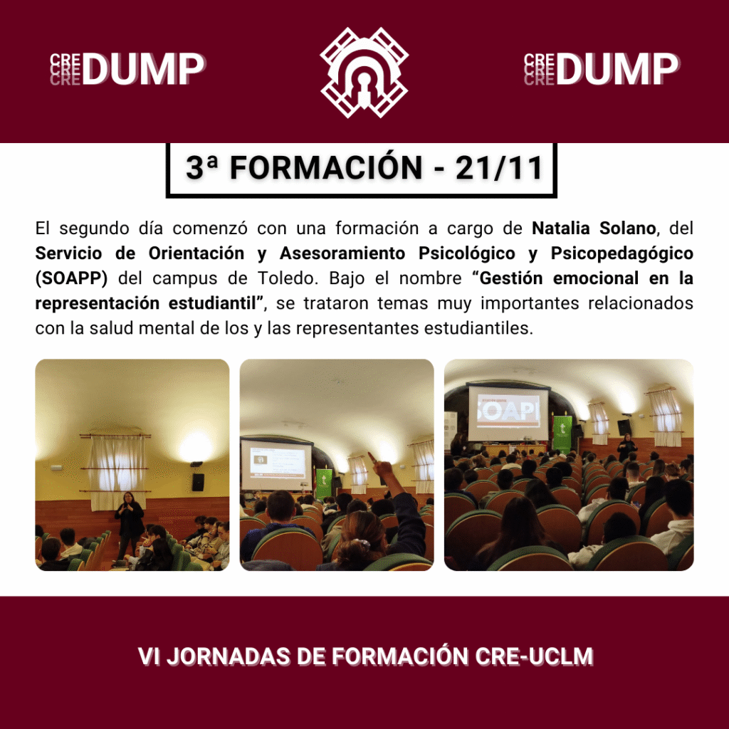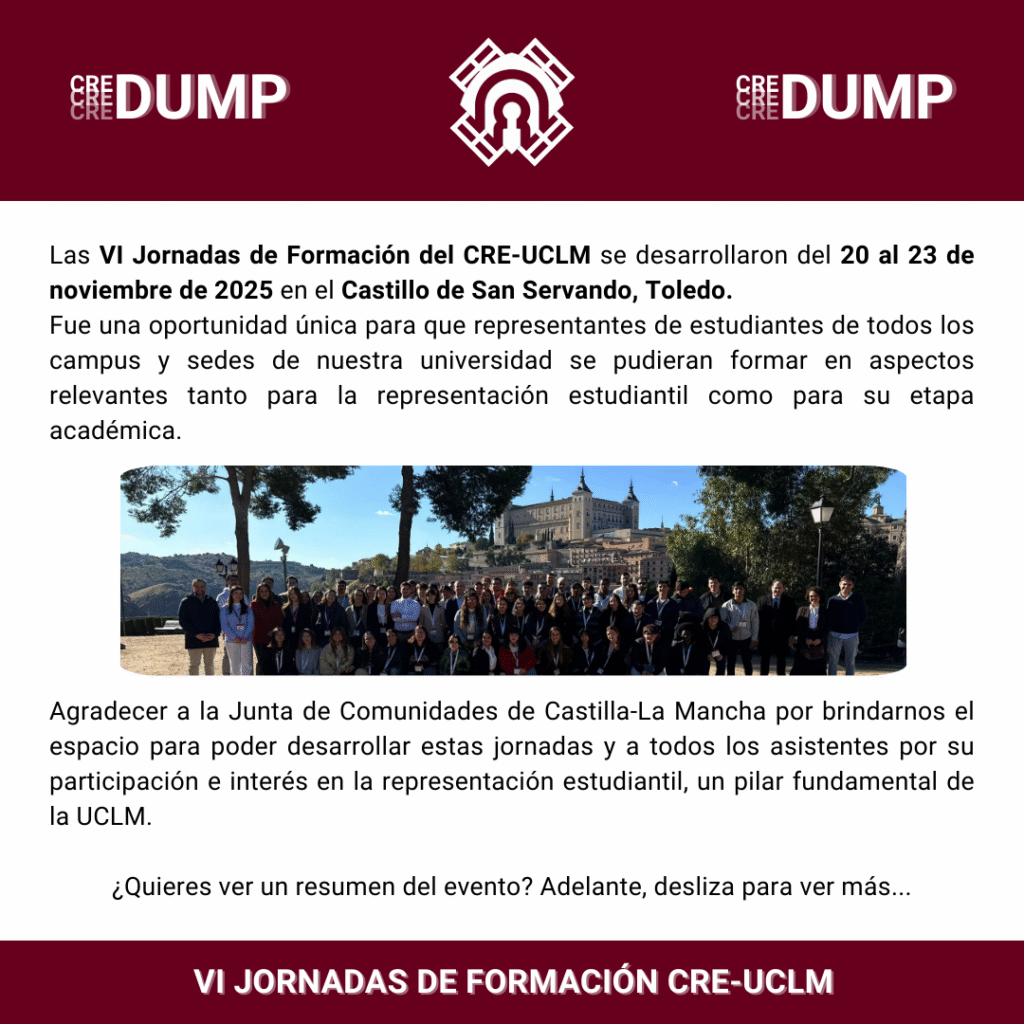 Ya han pasado unas semanas desde las VI JORNADAS DE FORMACIÓN del CRE-UCLM, celebradas del 20 al 23 de noviembre, pero aún seguimos sin superar todo lo vivido en ellas.