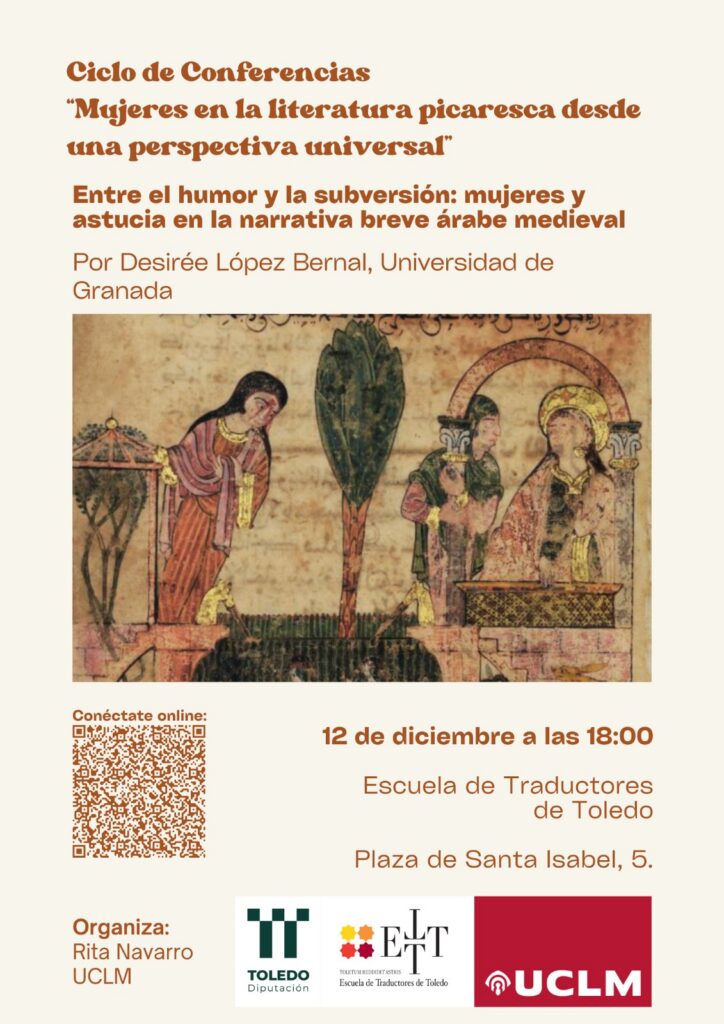 Conferencia de Desirée López Bernal: «Entre el humor y la subversión: mujeres y astucia en la narrativa breve árabe medieval»